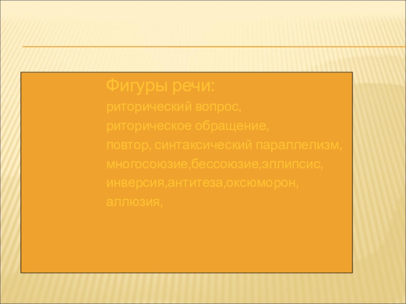Слайд 40 Многосоюзие – риторическая фигура, состоящая в намеренном повторении сочинительных союзов
