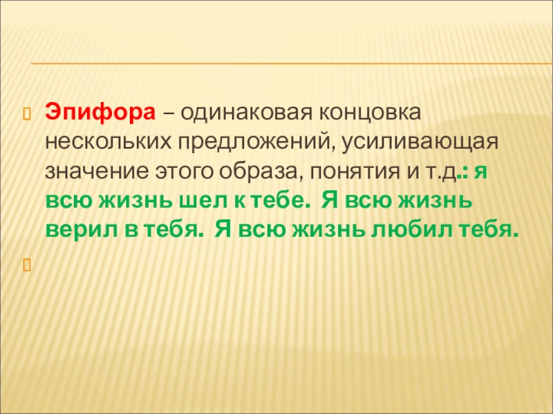 Слайд 32Эпифора – одинаковая концовка нескольких предложений, усиливающая значение этого образа, понятия