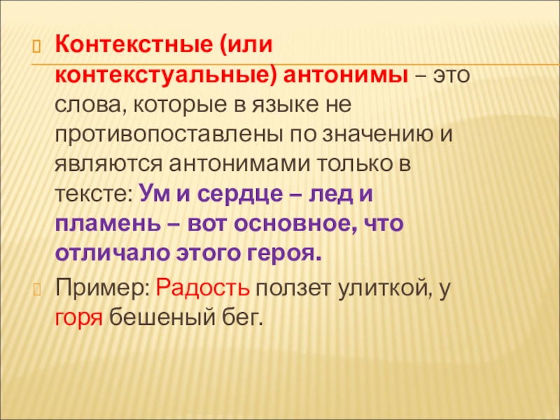 Слайд 9Контекстные (или контекстуальные) антонимы – это слова, которые в языке не