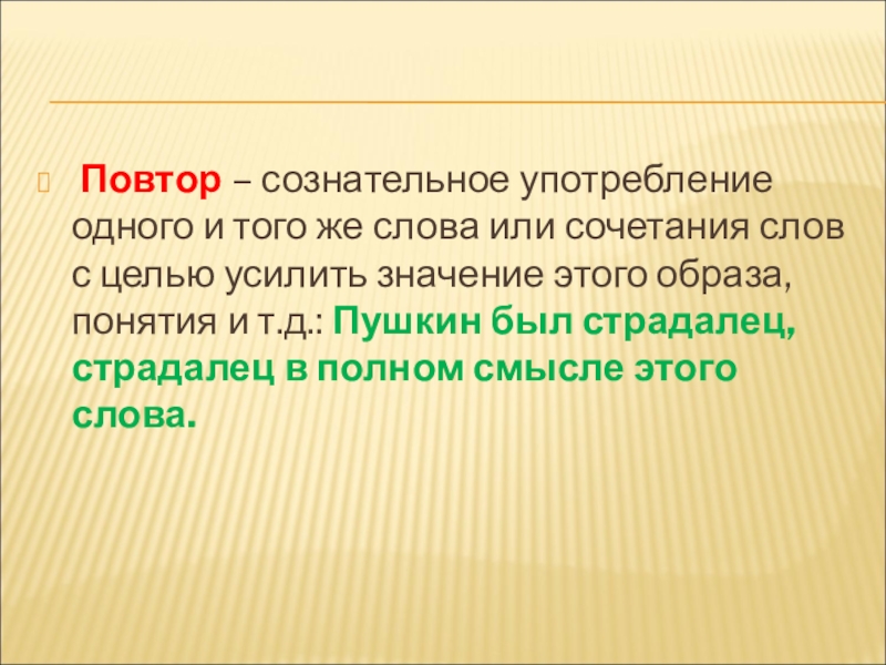 Слайд 42 Повтор – сознательное употребление одного и того же слова или