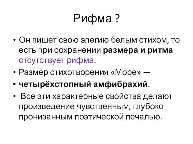Он пишет свою элегию белым стихом, то есть при сохранении
