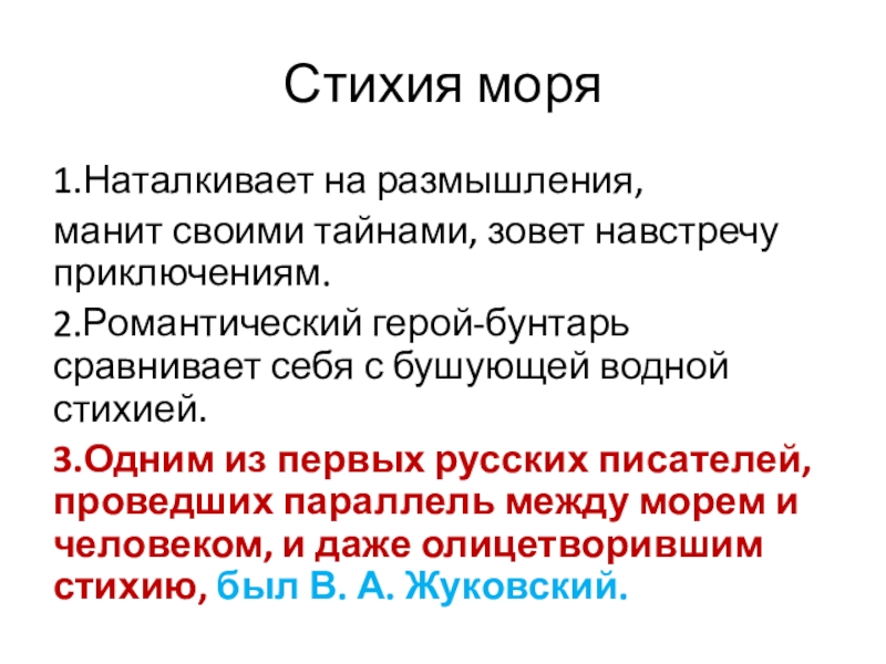 3.Одним из первых русских писателей, проведших параллель между морем и человеком, и даже олицетворившим стихию, был В. А. Жуковский.