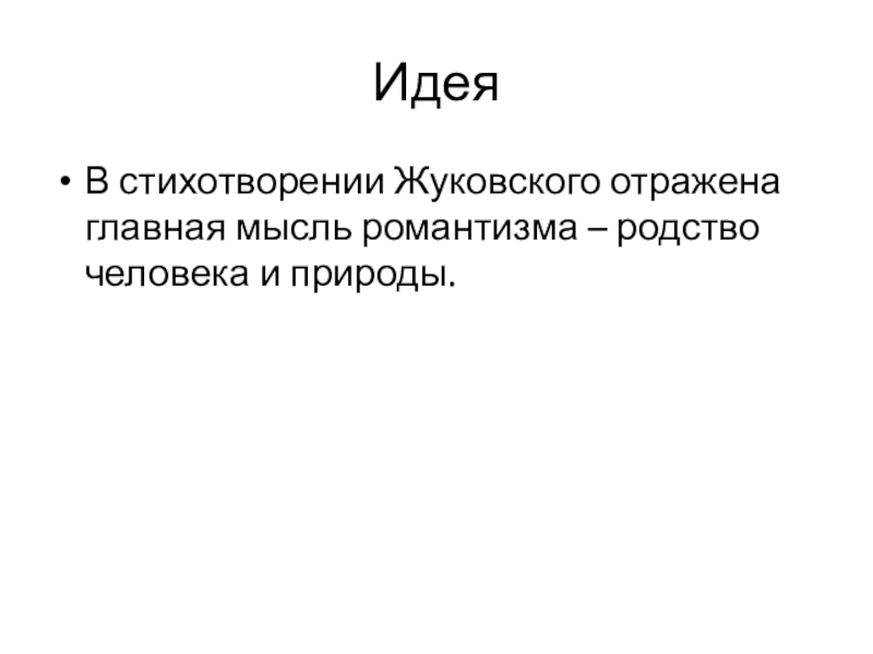 В стихотворении Жуковского отражена главная мысль романтизма – родство человека и