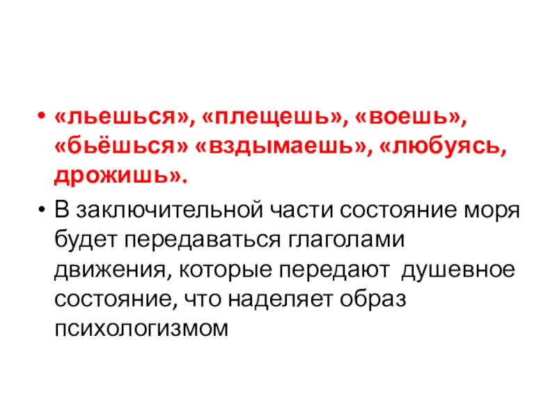 Слайд 19«льешься», «плещешь», «воешь», «бьёшься» «вздымаешь», «любуясь, дрожишь».