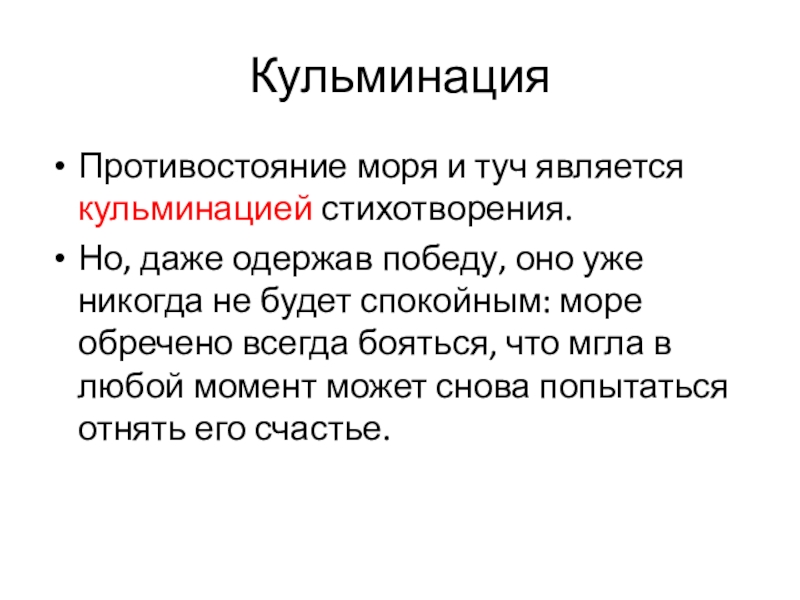 победу, оно уже никогда не будет спокойным: море обречено всегда бояться, что мгла в любой момент может снова попытаться отнять его счастье.