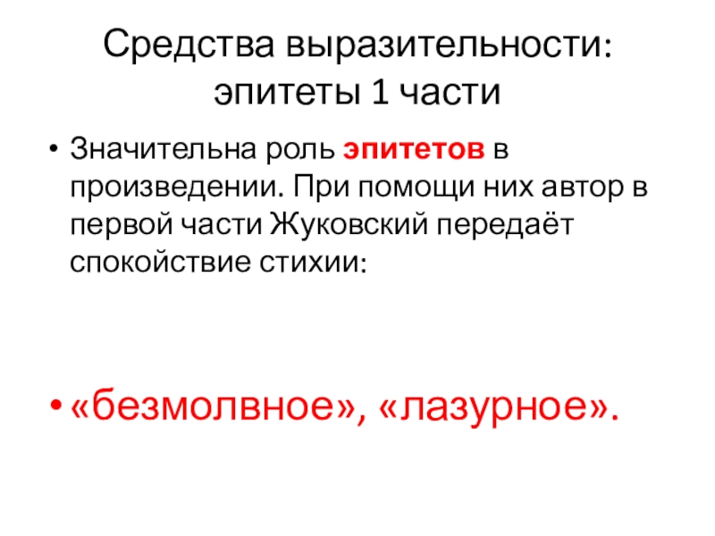 них автор в первой части Жуковский передаёт спокойствие стихии: