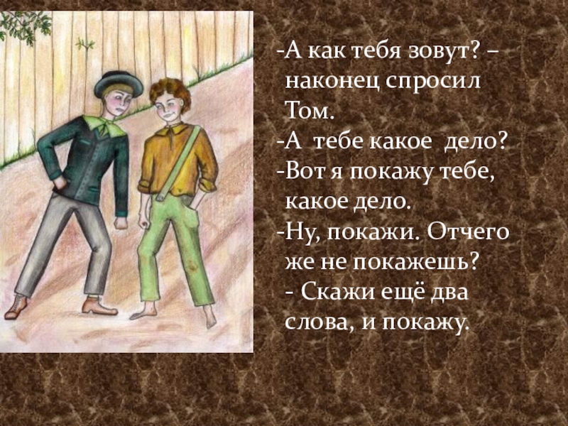 Слайд 8А как тебя зовут? – наконец спросил Том.