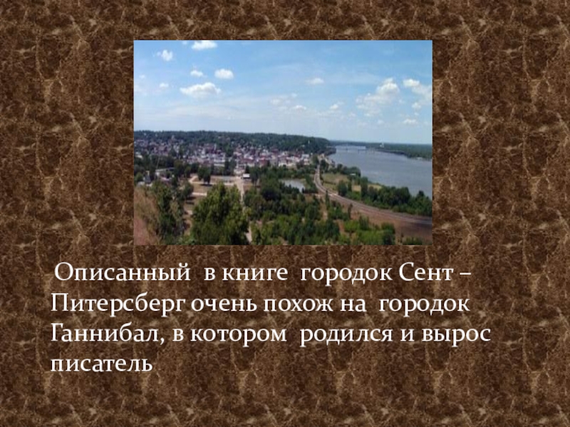 Слайд 6 Описанный в книге городок Сент – Питерсберг очень похож на