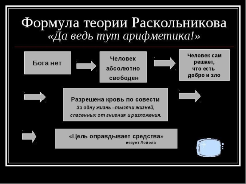 Слайд 18Раскольников усмехнулся усиленному и умышленному искажению своей идеи.