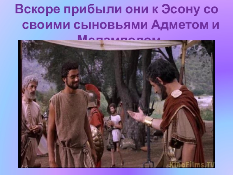 Слайд 18Вскоре прибыли они к Эсону со своими сыновьями Адметом и Меламподом.