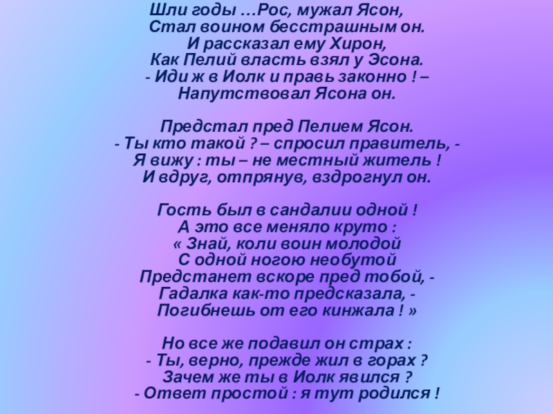 Шли годы …Рос, мужал Ясон,