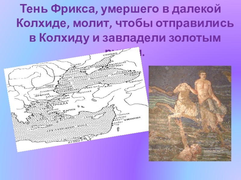 Слайд 22Тень Фрикса, умершего в далекой Колхиде, молит, чтобы отправились в Колхиду