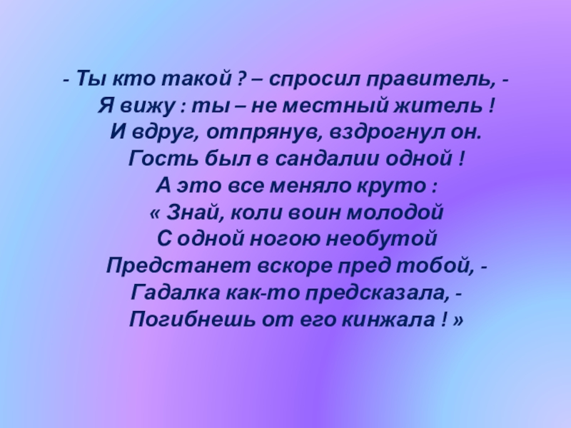 - Ты кто такой ? – спросил правитель, -