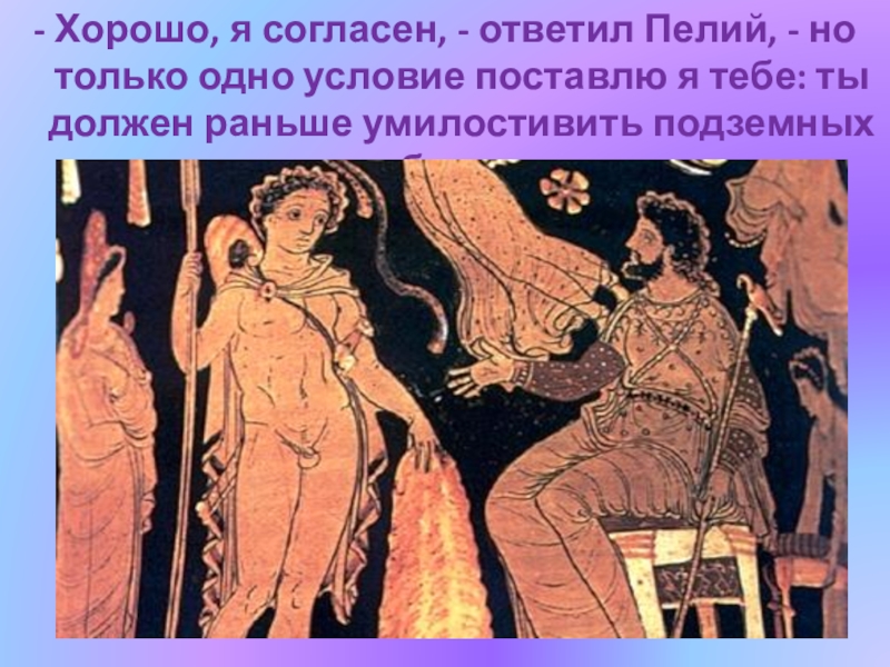 Слайд 21- Хорошо, я согласен, - ответил Пелий, - но только одно