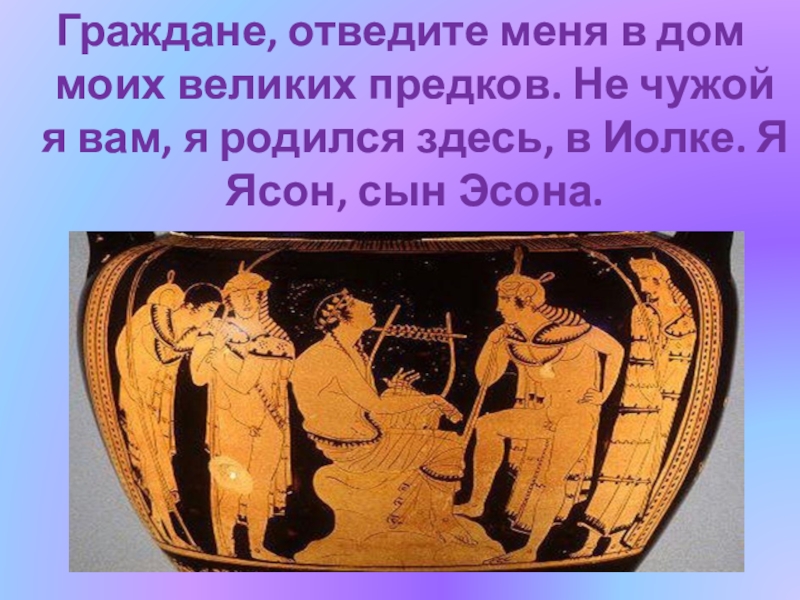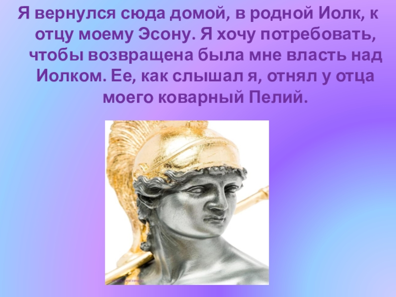 Слайд 13Я вернулся сюда домой, в родной Иолк, к отцу моему Эсону.