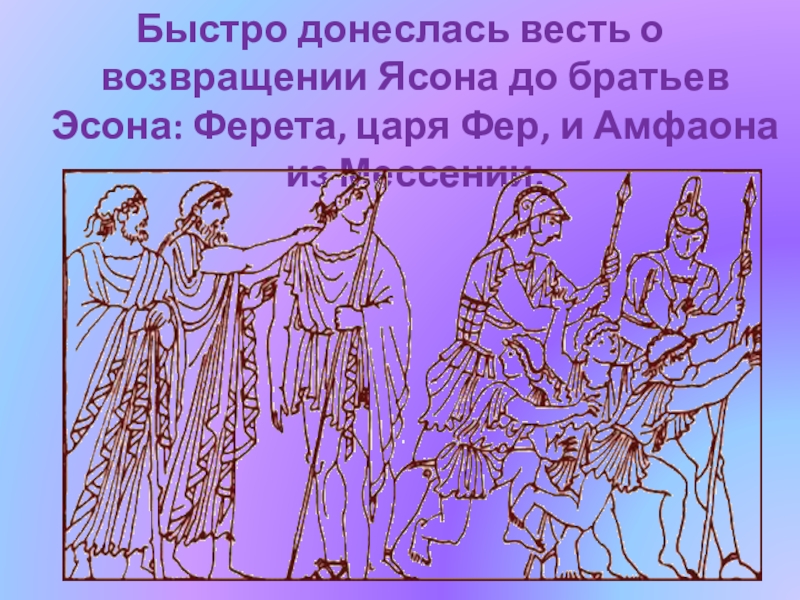 Слайд 17Быстро донеслась весть о возвращении Ясона до братьев Эсона: Ферета, царя