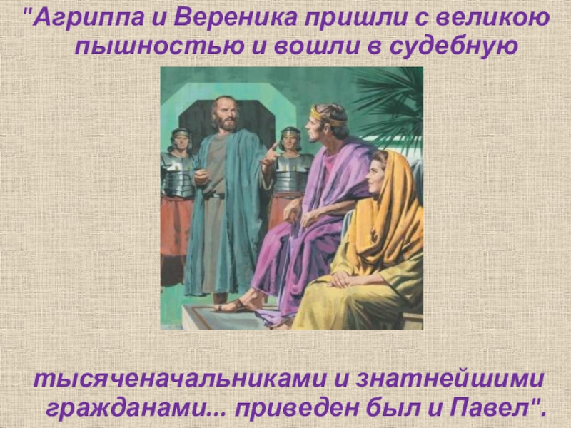 Слайд 20"Агриппа и Вереника пришли с великою пышностью и вошли в судебную