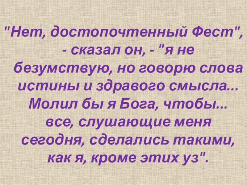 "Нет, достопочтенный Фест", - сказал он, - "я не безумствую, но