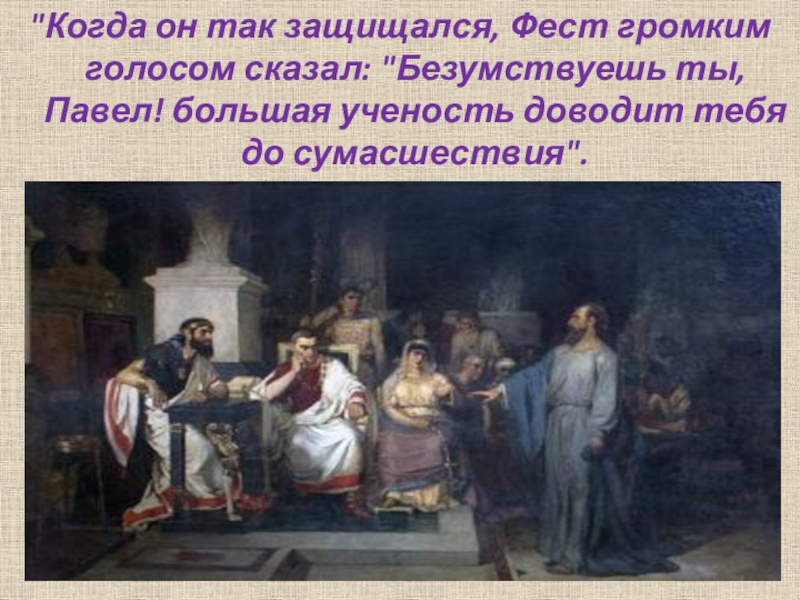 Слайд 26"Когда он так защищался, Фест громким голосом сказал: "Безумствуешь ты, Павел!