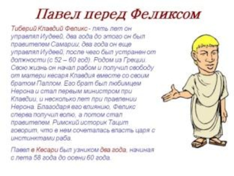Слайд 14В Кесарии Павел предстал на допросе перед римским правителем Феликсом.