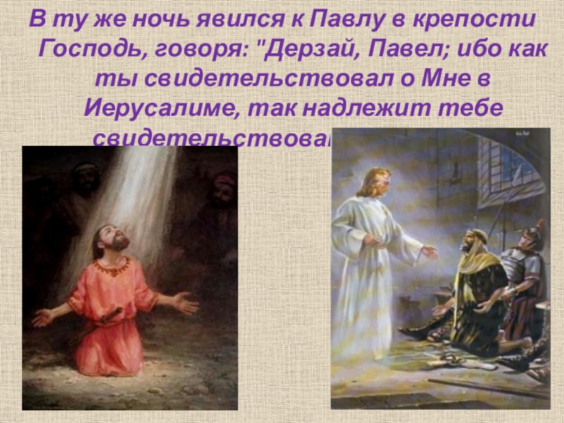Слайд 5В ту же ночь явился к Павлу в крепости Господь, говоря: