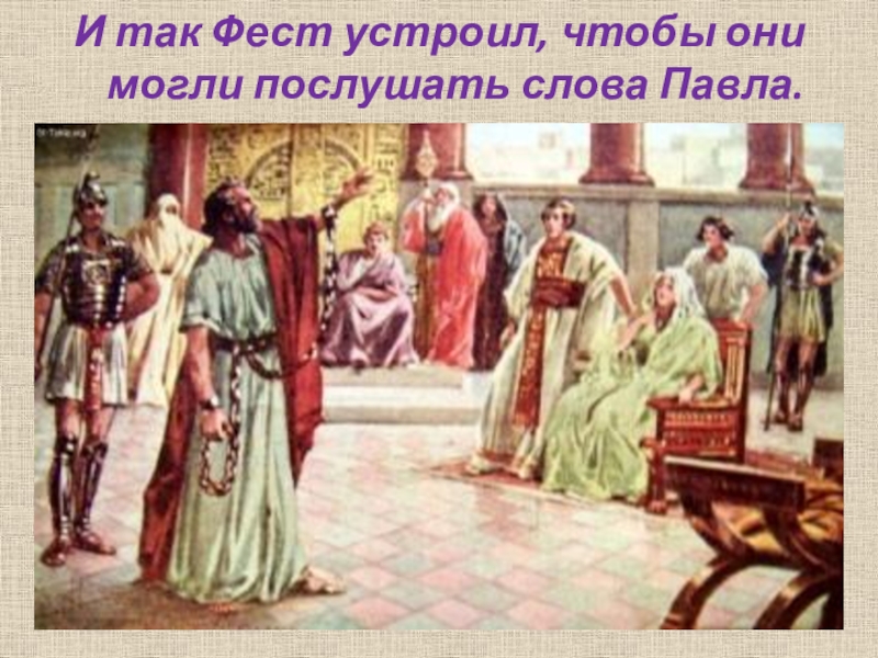 Слайд 19И так Фест устроил, чтобы они могли послушать слова Павла.