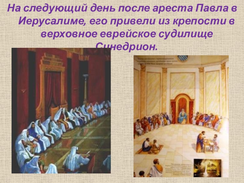 Слайд 3На следующий день после ареста Павла в Иерусалиме, его привели из