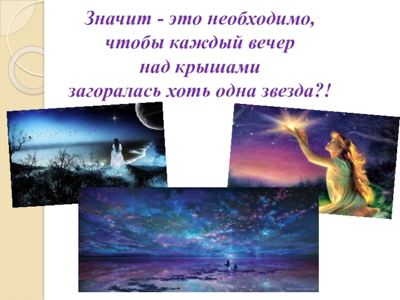 Слайд 17Значит - это необходимо, чтобы каждый вечер над крышами загоралась хоть одна звезда?!