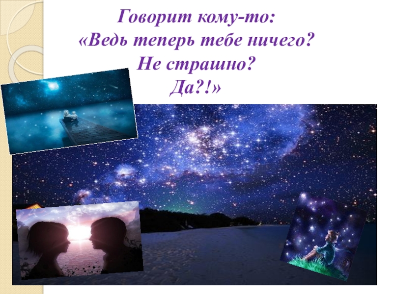 Слайд 14Говорит кому-то: «Ведь теперь тебе ничего? Не страшно? Да?!»