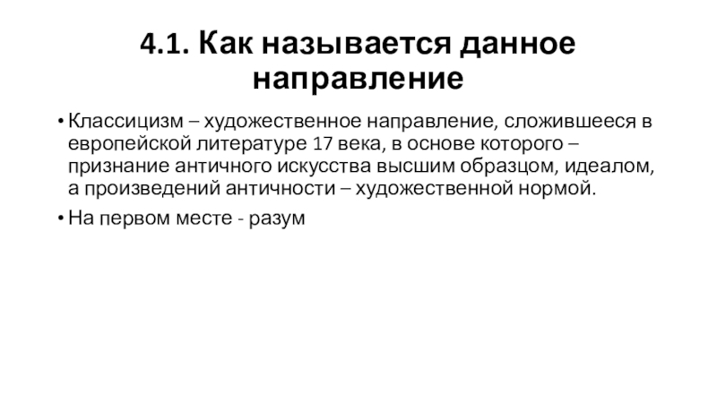 литературе 17 века, в основе которого – признание античного искусства высшим образцом, идеалом, а произведений античности – художественной нормой.