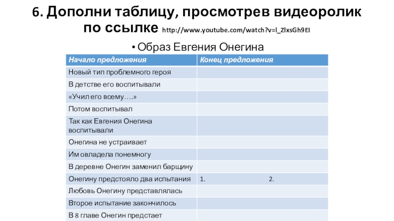 Следующая половина урока – повторение с помощью видеоролика образа Евгения Онегина.