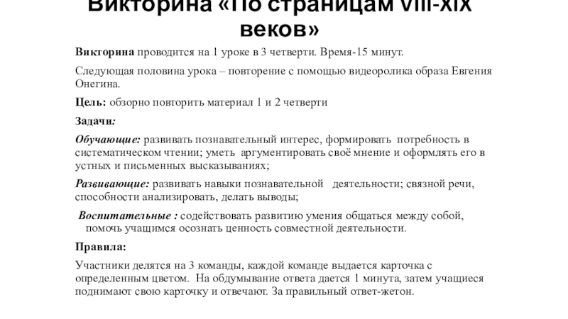 Слайд 1Викторина «По страницам VIII-XIX веков»
