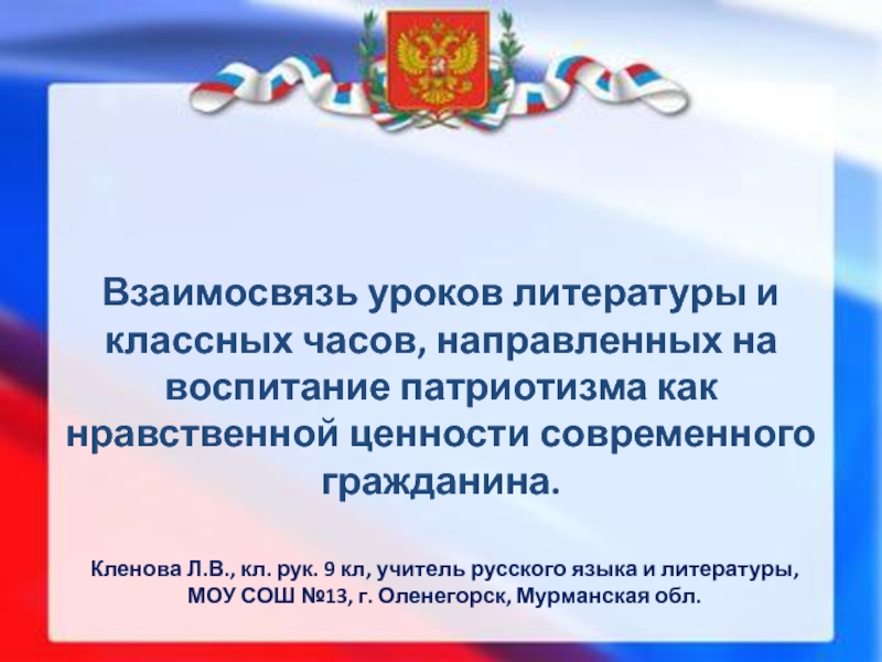 Кленова Л.В., кл. рук. 9 кл, учитель русского языка и литературы,