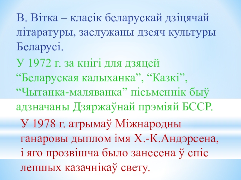 У 1978 г. атрымаў Міжнародны ганаровы дыплом імя Х.-К.Андэрсена, і яго прозвішча было занесена ў спіс лепшых казачнікаў свету.
