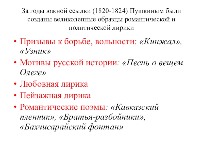 Романтические поэмы: «Кавказский пленник», «Братья-разбойники», «Бахчисарайский фонтан»