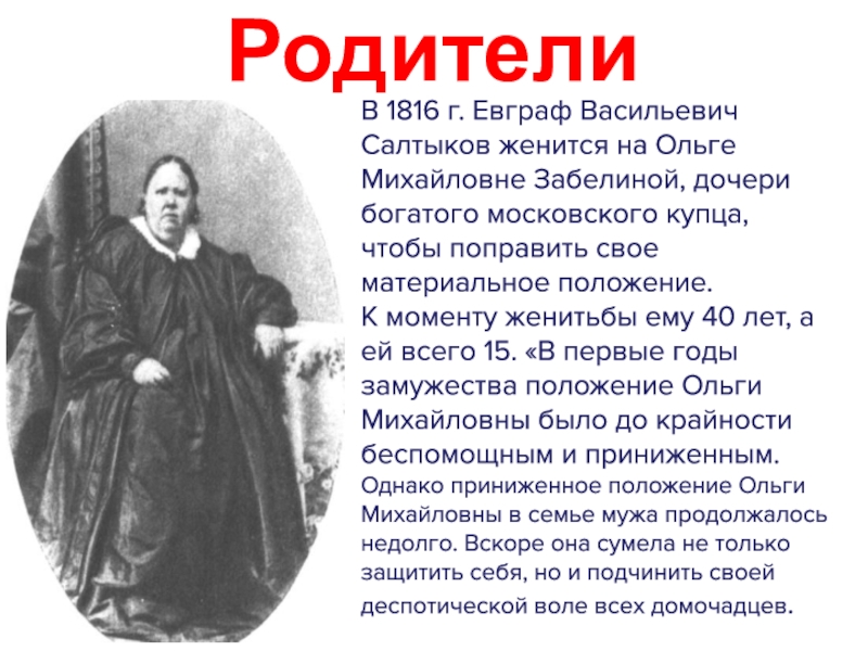 В 1816 г. Евграф Васильевич Салтыков женится на Ольге Михайловне Забелиной,