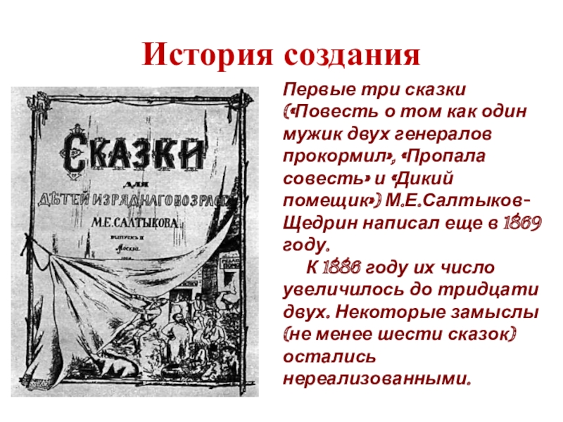 генералов прокормил», «Пропала совесть» и «Дикий помещик») М.Е.Салтыков-Щедрин написал еще в 1869 году.