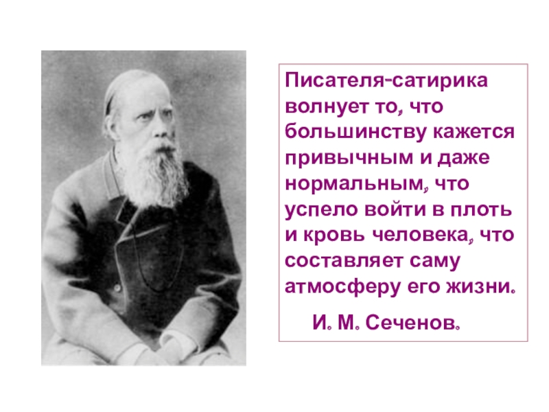 Слайд 31Писателя-сатирика волнует то, что большинству кажется привычным и даже нормальным, что