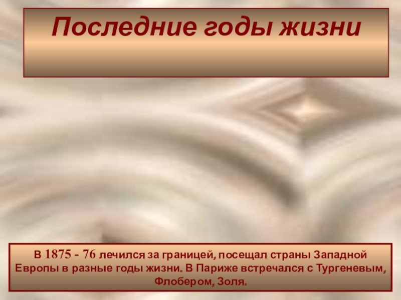 Западной Европы в разные годы жизни. В Париже встречался с Тургеневым, Флобером, Золя.