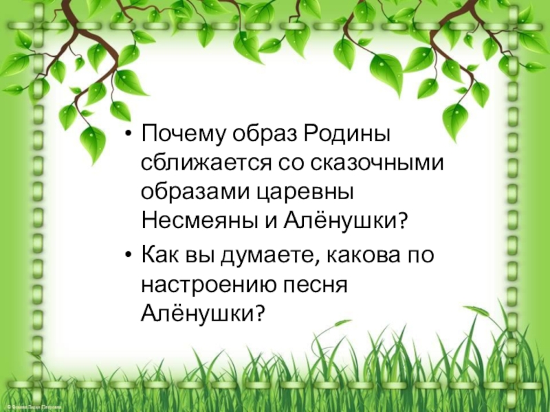Слайд 5Почему образ Родины сближается со сказочными образами царевны Несмеяны и Алёнушки?