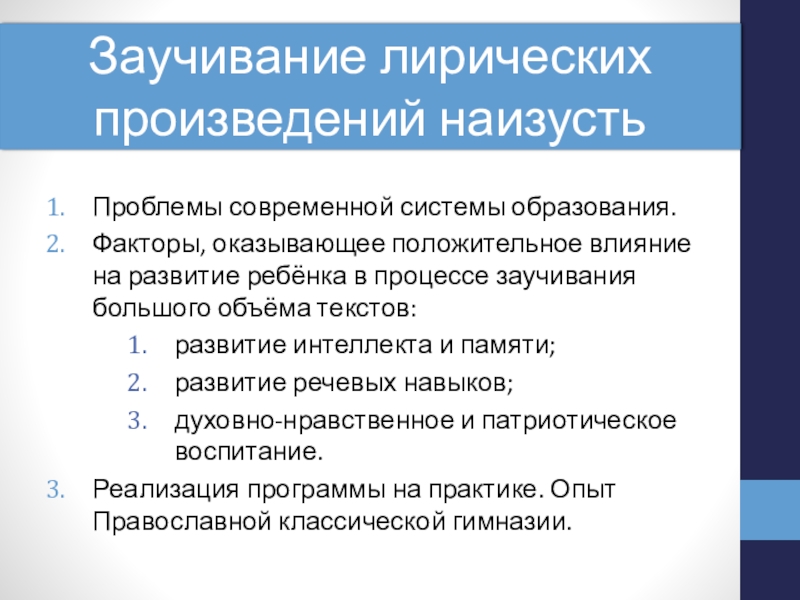 Заучивание лирических произведений наизусть