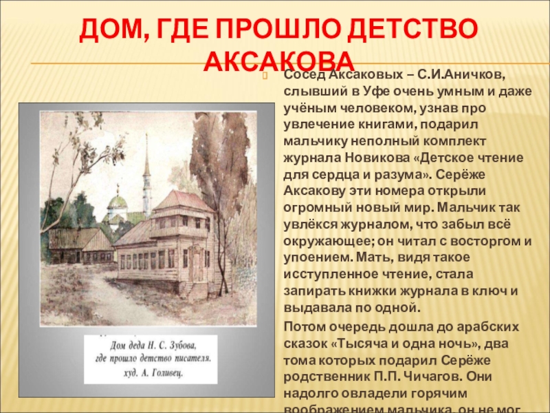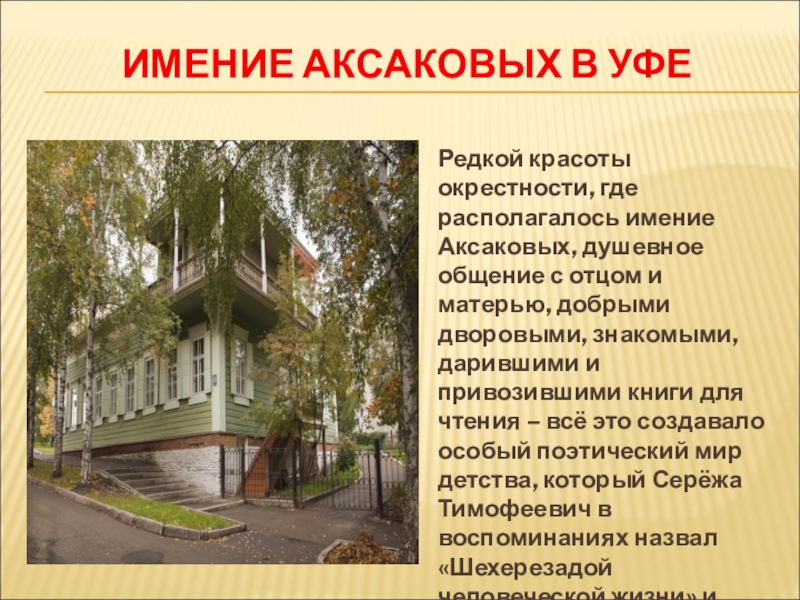 Слайд 15ДОМ, ГДЕ ПРОШЛО ДЕТСТВО АКСАКОВА