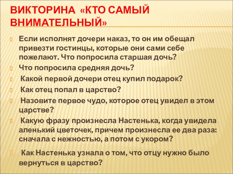 Слайд 21Имя человека, рассказавшего Сергею Тимофеевичу Аксакову сказку об аленьком цветочке?