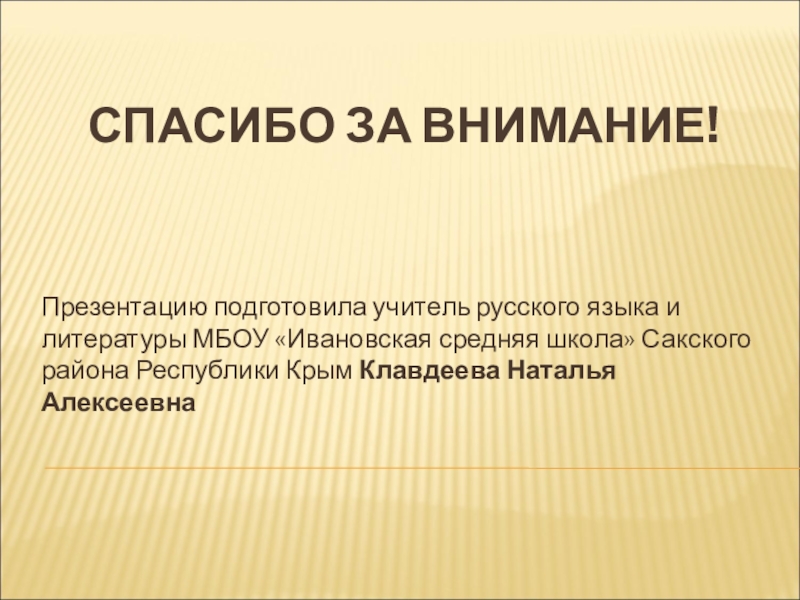 Презентацию подготовила учитель русского языка и литературы МБОУ «Ивановская