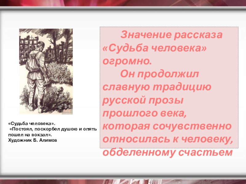 Значение рассказа «Судьба человека» огромно.