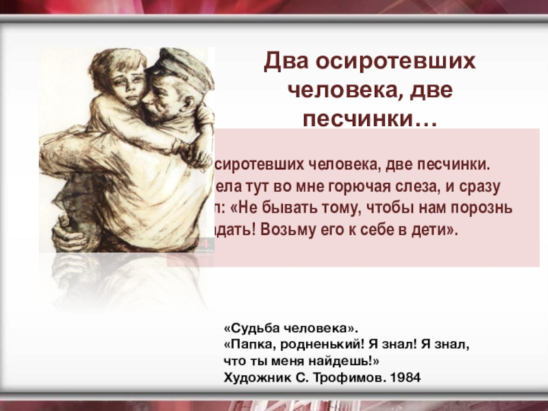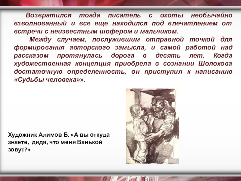 «Судьба человека». Андрей Соколов и Ванюшка. Художник Б. Алимов