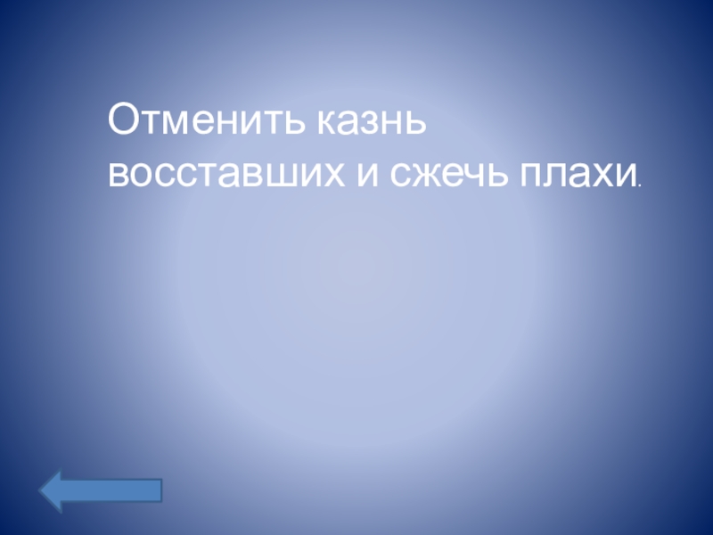 Слайд 22Отменить казнь восставших и сжечь плахи.