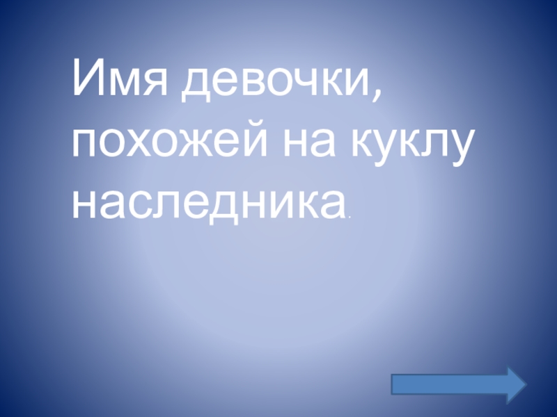 Слайд 7Имя девочки, похожей на куклу наследника.