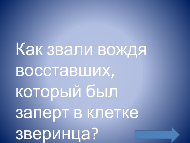 Слайд 15Как звали вождя восставших, который был заперт в клетке зверинца?