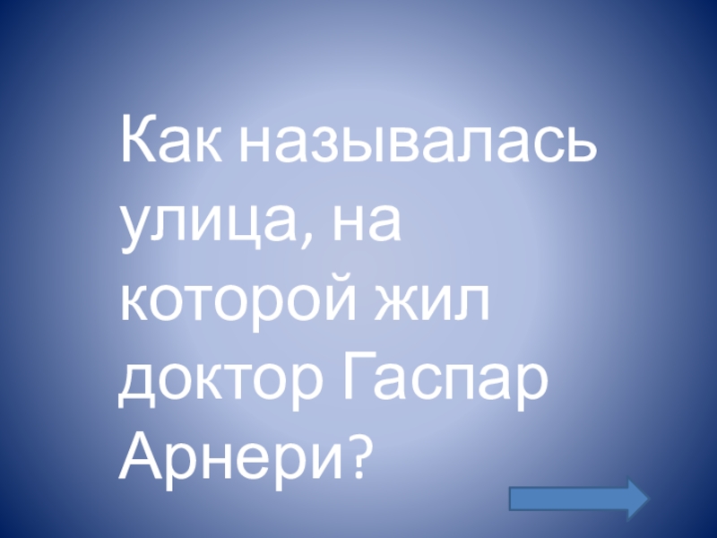 Слайд 29Как называлась улица, на которой жил доктор Гаспар Арнери?
